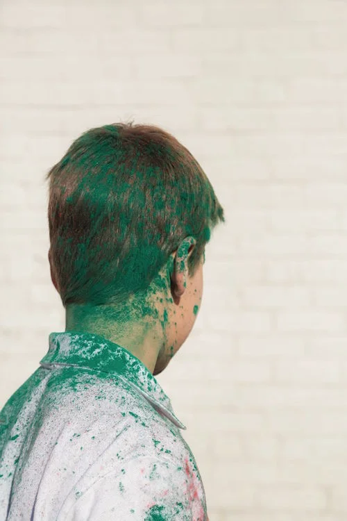 This year (after a few failed pitches to Billy who balked on an idea involving a set creation) the inspiration came in the form of this photo:My son had a color run as part of a school fundraiser, and it got me thinking we could do something similar with Christmas colors. You may be familiar with holi color festival, which is a spring festival popular in Southeast Asia. The colored powder is now frequently copied at assorted events and with the power of the internet you can either buy or make your own. The powder is cornstarch based, so it's washable and environmentally safe.